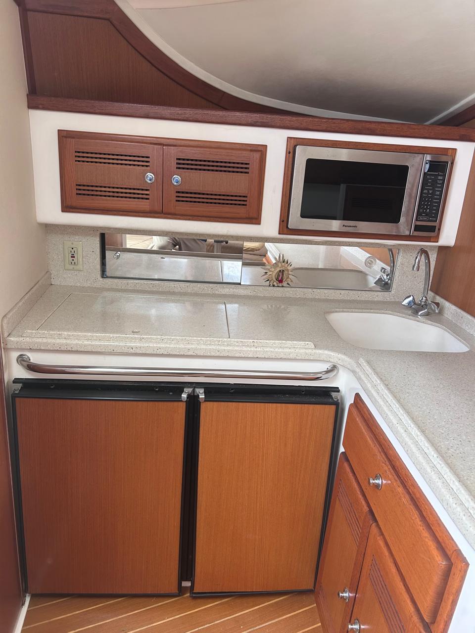 This 45-foot fishing yacht features a tuna tower, outriggers, and a fighting chair, making it ideal for offshore big game fishing. Onboard electronics include GPS, sonar, fish finder, and Garmin navigation systems, ensuring precision and efficiency on the water.