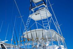 Fully equipped with tournament-grade fishing gear including a fighting chair, Penn and Shimano reels, tuna tubes, outriggers, and bait tanks the Bus Pass is built for serious offshore fishing. Advanced electronics such as GPS, sonar, radar, and fish finder systems help locate fish quickly and efficiently.