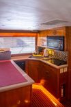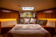 The yacht comfortably accommodates up to 12 passengers and features three cabins and three bathrooms with showers, providing plenty of space to relax throughout the trip. Powered by Caterpillar engines, it cruises at 20 knots for a smooth and efficient ride.